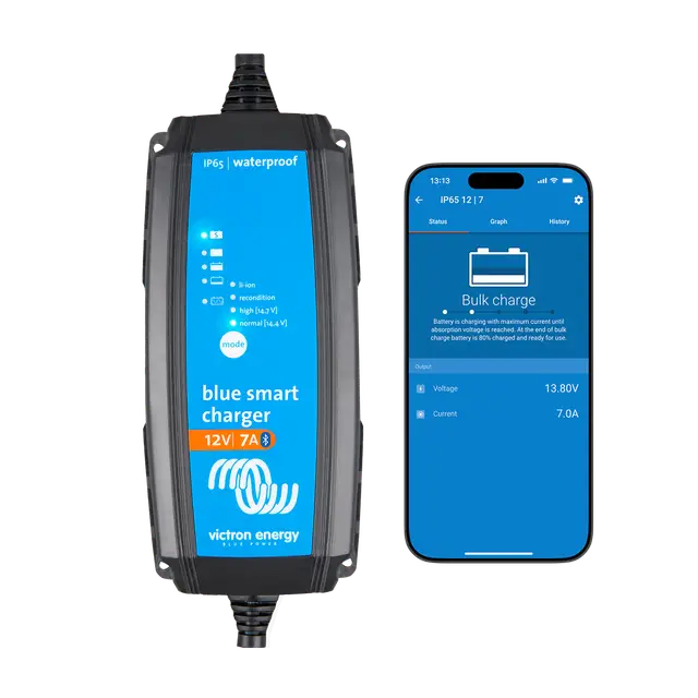 Blue Smart IP65 punjač baterija je novi profesionalni punjač s ugrađenom Bluetooth funkcijom povezivanja. Može se koristiti u svrhu punjenja svih vrsta baterija, od olovnih, preko AGM i GEL baterija pa sve do Li-ion baterija.